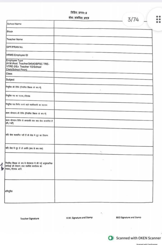 HRMS प्रणाली के अंतर्गत सभी शिक्षकों एवं कर्मियों का सेवा सत्यापन भी किया जाना है। इसके लिए संबंधित प्रखंड शिक्षा पदाधिकारी और चिन्हित विद्यालयों के प्रधानाध्यापकों को आदेश दिया गया है कि विहित प्रपत्र-2 में जानकारी भरकर 2 जून 2025 तक हार्ड और सॉफ्ट कॉपी में समर्पित करें।