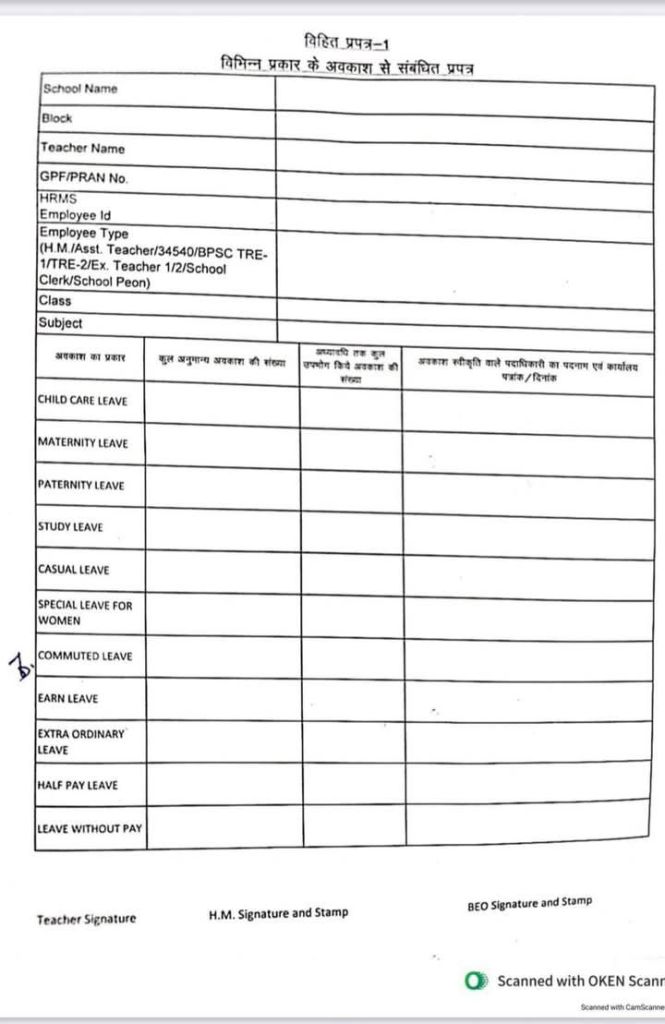 गर्मियों की छुट्टी के बाद सभी प्रकार के अवकाश आवेदन HRMS के माध्यम से ही शिक्षकों एवं कर्मियों को स्वंय करना होगा। जनवरी 2025 से मई 2025 तक के उपभोग किए गए Casual Leave, Medical Leave, EL व अन्य अनुमन्य अवकाश का विवरण विहित प्रपत्र-1 में भरकर, 31 मई 2025 तक प्रखंड शिक्षा पदाधिकारी कार्यालय में जमा करना अनिवार्य है।